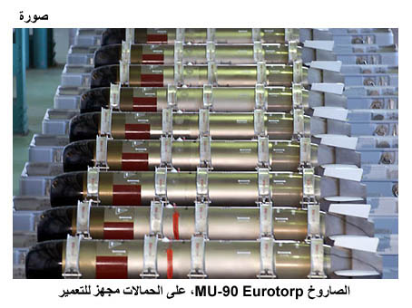 الصاروخ MU-90 Eurotorp، على الحمالات مجهَّز للتعمير