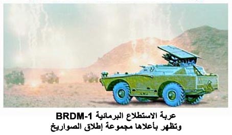 عربة الاستطلاع البرمائية BRDM-1 وتظهر بأعلاها مجموعة إطلاق الصواريخ