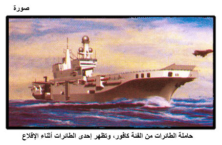 حاملة الطائرات من الفئة كافور، وتظهر إحدى الطائرات أثناء الإقلاع