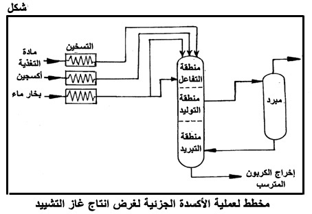 مخطط لعملية الأكسدة الجزئية لغرض إنتاج غاز التشييد