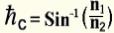 وإذا زادت قيمة زاوية السقوط ، حتى وصلت قيمتها إلي الزاوية الحرجة c  (تعرف الزاوية الحرجة  من العلاقة الرياضية )، فإن زاوية الانعكاس تصبح 90 درجة، أي أن الشّعاع المنعكس يستمر في حركته، موازياً تماماً للسطح الفاصل المكون من المادة العازلة كهربائياً؛ فإذا زادت قيمة زاوية السقوط مرة أخري لتصبح قيمتها أكبر من القيمة C  الحرجة، فإن الشعاع الساقط ينعكس بكامله مرة أخري إلي الوسط الرقم 1، ذي معامل الانكسار الأعلى، وهذه الحالة هي التي يُطلق عليها "حالة الانعكاس الداخلي الكامل".