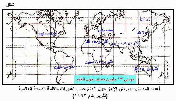 أعداد المصابين بمرض الإيدز حول العالم حسب تقديرات منظمة الصحة العالمية (تقرير عام 1993)