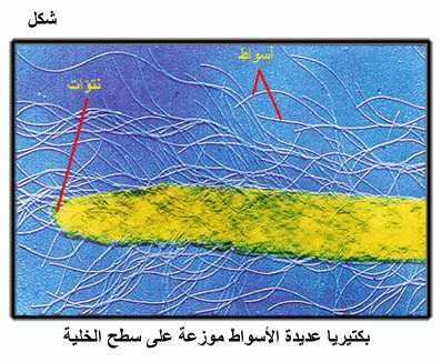 بكتيريا عديدة الأسواط موزعة على سطح الخلية