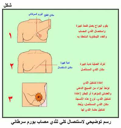 رسم توضيحي لاستئصال كلي لثدي مصاب بورم سرطاني