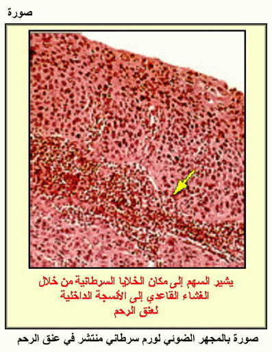 صورة بالمجهر الضوئي لورم سرطاني منتشر في عنق الرحم