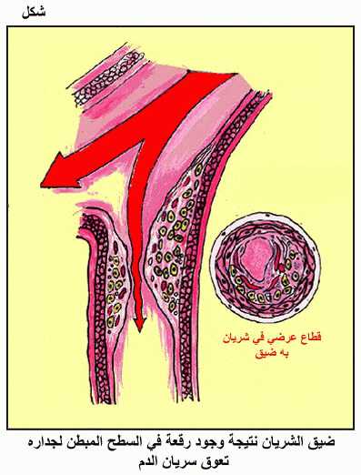 ضيق الشريان نتيجة وجود رقعة في السطح المبطن لجداره تعوق سريان الدم