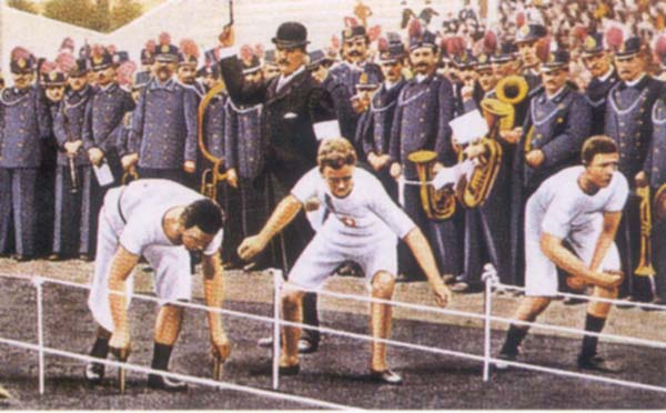 أول سباق في العدو، 100م، في دورة أثينا الأولى 1896م