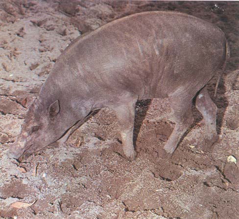 خنزير الهند (البابروسة)، يعيش في الغابات بجوار المياه. وهو الآن تحت الحماية