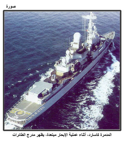 المدمرة كاسارد، أثناء عملية الإبحار مبتعدة، يظهر مدرج الطائرات