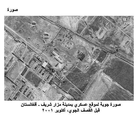 صورة جوية لموقع عسكري بمدينة مزار شريف بأفغانستان، قبل القصف الجوي، أكتوبر 2001