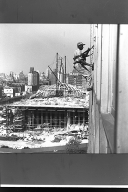 مقر الأمم المتحدة أثناء إنشائه حيث يبدو مبنى الجمعية العامة في الخلف تحت الإنشاء في سبتمبر 1951
