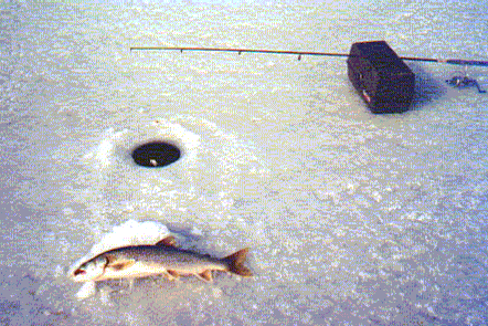 صيد الجليد، تستخدم فيه صنارة الصيد المعتادة