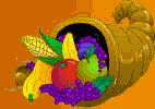 سلة على شكل قرن تمتلئ إلى حافتها بالخضراوات والفواكه