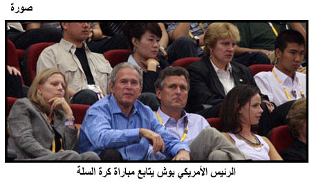 الرئيس الأمريكي بوش يتابع مباراة كرة سلة