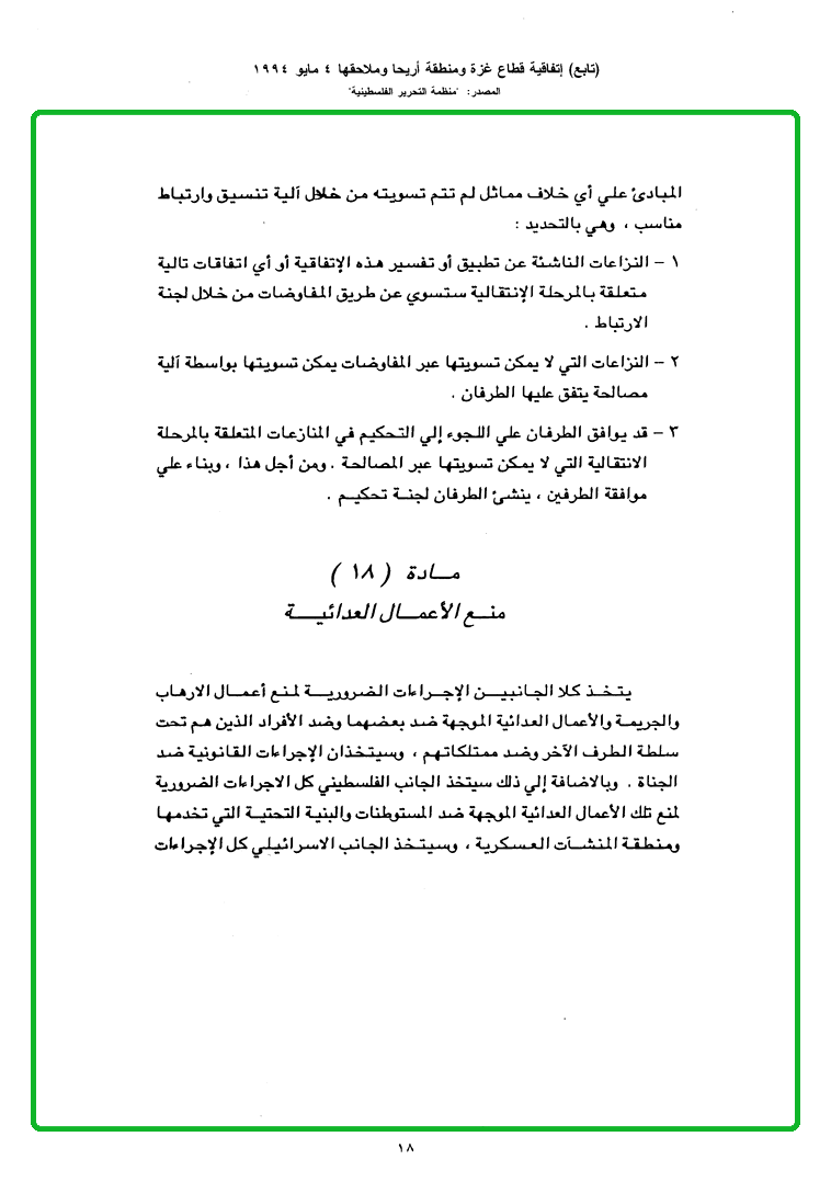 معاهدة السلام: فلسطين/إسرائيل (18)
