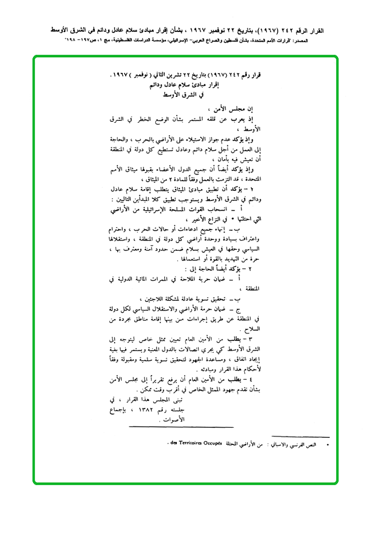 إقرار مبادئ سلام عادل ودائم في الشرق الأوسط