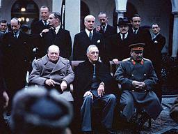 تشرشل وروزفلت وستالين في مؤتمر يالتا، الذي عقد من 28 نوفمبر إلى الأول من ديسمبر 1943