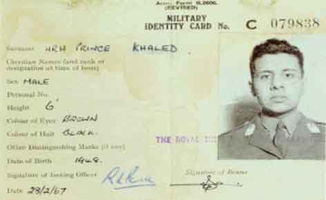 ما أن تجاوزت الثانية عشرة من عمري حتى بدأ يراودني حلم الالتحاق بأكاديمية ساندهيرست. وعلى الرغم من أنني ولدت في شهر سبتمبر عام 1949 إلاّ أنني سجَّلت 1948 تاريخاً لميلادي حتى أحظى بالقبول المبكر في الأكاديمية. صدرت لي هذه البطاقة العسكرية وأنا في السابعة عشرة والنصف من عمري.
