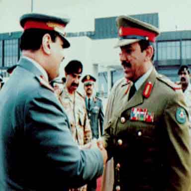مع وزير الدفاع البحريني، الفريق الشيخ خليفة بن أحمد آل خليفة، زميل الدراسة في ساندهيرست وأحد أصدقائي المقربين.