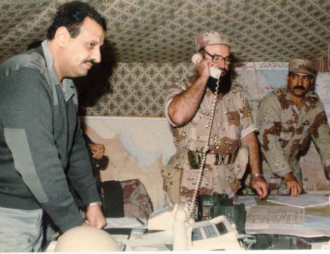 أدير معركة الخفجي، إحدى المعارك الأساسية في حرب الخليج، من مركز القيادة المتقدم، ويظهر في الصورة العميد سهيل بن عبد الظاهر أبو السمح، وهو يتحدث عبر الهاتف.