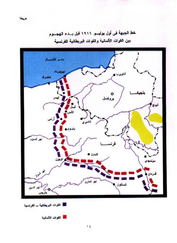 خط الجبهة أول يوليه 1916 قبل بدء الهجوم بين القوات الألمانية والقوات البريطانية الفرنسية