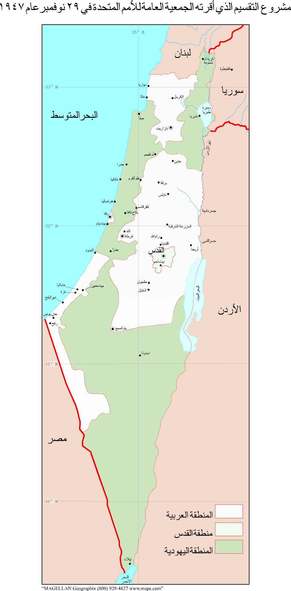 مشروع التقسيم الذي أقرته الجمعية العامة للأمم المتحدة في 29 نوفمبر سنة 1947