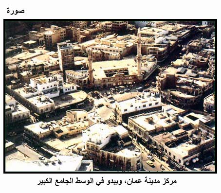 مركز مدينة عمان ويبدو في الوسط الجامع الكبير