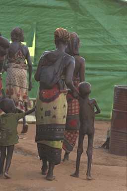 عملية الأمم المتحدة في الصومال، بعض الصوماليين ينتظرون خارج مركز الأمم المتحدة للتغذية المدعمة