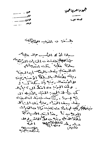 إلى الرئيس جمال عبد الناصر