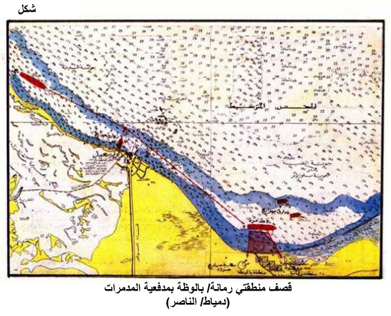 قصف منطقتي رمانة/بالوظة بمدفعية المدمرات (دمياط/والناصر)