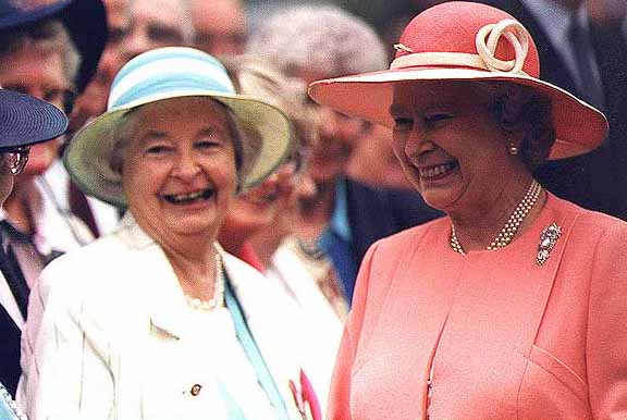 الملكة تتحدث مع ضيوفها، في إحدى حفلات الحديقة، بقلعة هيلزبورج أثناء زيارتهالأيرلندا الشمالية، في يونيه 1997