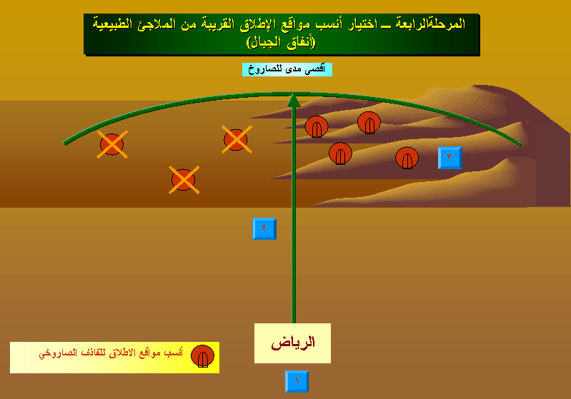 المرحلة الرابعة: تحديد أنسب مواقع الإطلاق القريبة من الملاجئ الطبيعية (أنفاق الجبال)