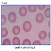 لطاخة دم توضح كريات الأهليلجية، وفقدان الشكل الدائري الطبيعي للكريات