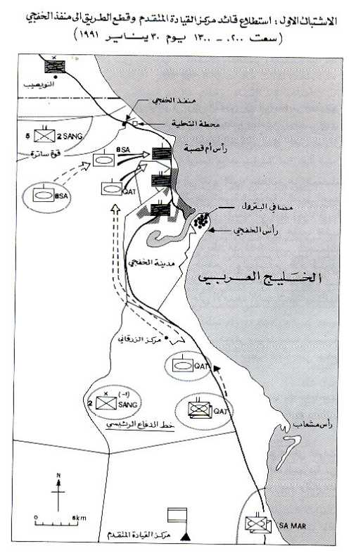 الاشتباك الأول : استطلاع قائد مركز القيادة المتقدم وقطع الطريق إلى منفذ الخفجي