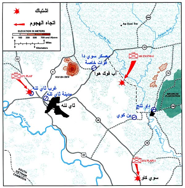 مواقع هجوم الفرقة التاسعة، من جيش فيتنام الجنوبية، في شمالي داو تينج Dau Tieng، في محافظة تاي ننه