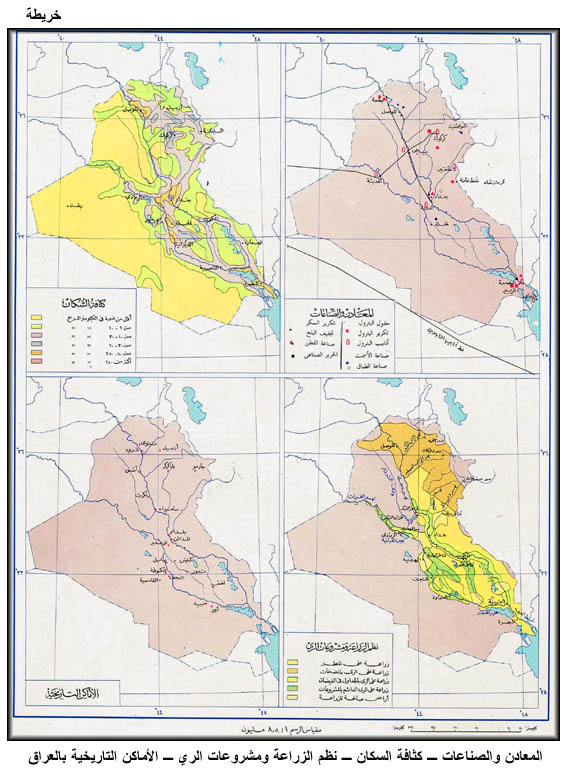 خرائط الجمهورية العراقية (المعادن والصناعات ـ كثافة السكان ـ نظم الزراعة ـ الأماكن التاريخية)