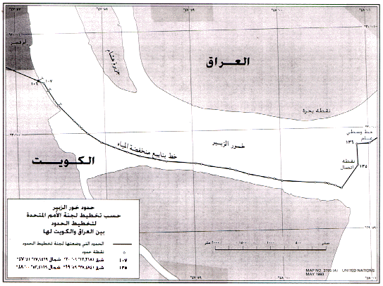 حدود خور الزبير حسب تخطيط لجنة الأمم المتحدة لتخطيط الحدود بين العراق والكويت